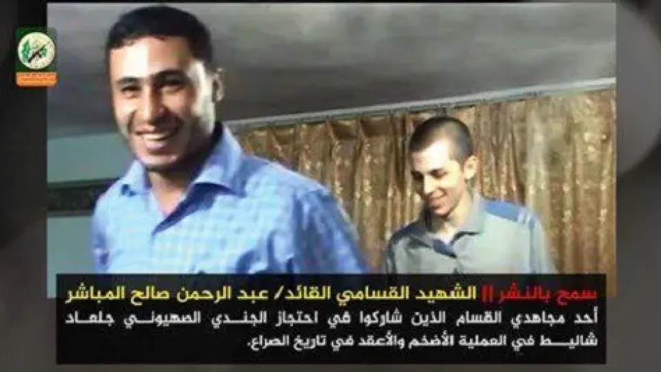 نشرت كتائب القسام الذراع العسكري لحركة حماس صورة جديدة للجندي الإسرائيلي جلعاد شاليط أثناء فترة أسره جمعته احد المشرفين عملية احتجازه الشهيد عبد.