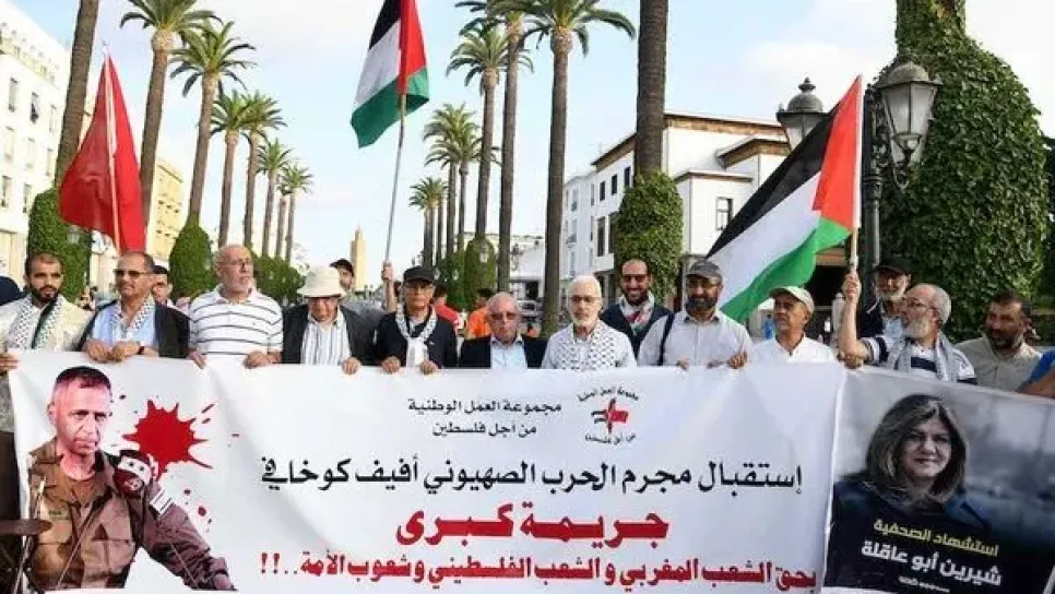 احتج عدد من النشطاء والمواطنين أمام البرلمان المغربي، مساء أمس الإثنين، على زيارة رئيس أركان الجيش الصهيوني، أفيف كوخافي، للرباط. وتجمعت فعاليات وشخصيات مدنية وحقوقية مغربية ومواطنين بالساحة المقابلة للبرلمان المغربي في العاصمة المغربية الرباط، ضمن وقفة شعبية رفضا واحتجاجا على زيارة كوخافي، الذي وصل مساء أمس إلى الرباط. وحسب ما نقلت صحيفة "هسبريس"، فقد ردد المحتجون شعارات تستنكر زيارة كوخافي إلى الرباط، معتبرين أن حلوله بأرض المملكة "جريمة تطبيعية جديدة ضد الشعب المغربي والفلسطيني وشعوب الأمة". وأوضحت "هسبيرس" أن المتظاهرين احتجوا مطلقين عبارات: "من للمغرب لفلسطين.. شعب واحد لا شعبين"ـ و"ال...