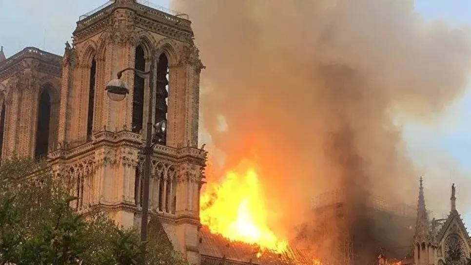 تجند الفرنسيون بعض بلدان العالم اليوم الموالي من  الحريق المهول الذي التهم بصفة كاملة  سقف برج رمز التراث الفرنسي لكاتدرائية نوتر دام بباريس.