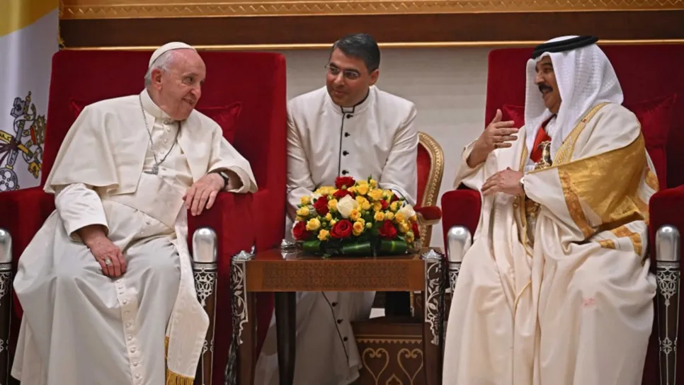 وصل البابا فرنسيس عصر الخميس إلى البحرين، في زيارة تستمر أربعة أيام وهي الأولى من نوعها إلى المملكة الخليجية الصغيرة، يخصص الجزء الأكبر منها للتأكيد على أهمية الحوار بين الأديان. وحظي بابا الفاتيكان باستقبال رسمي ثم التقى ملك البحرين حمد بن عيسى آل خليفة في قصر الصخير، حيث ألقى كلمته الأولى أمام السلطات وممثلين عن السلك الدبلوماسي. وأقامت البحرين التي يبلغ تعداد سكانها 1,4 مليون نسمة، علاقات دبلوماسية مع الفاتيكان عام 2000. ويقطنها نحو ثمانين ألف مسيحي كاثوليكي، وفق الفاتيكان، ينحدرون بشكل رئيسي من جنوب شرق آسيا وإفريقيا والشرق الأوسط ومن دول غربية. وهذه الزيارة التاسعة والثلاثين لبابا الفا...