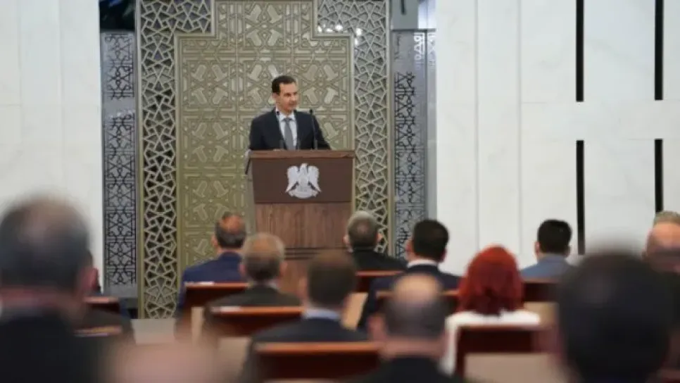 تعرض الرئيس السوري بشار الأسد، الأربعاء، لأزمة صحية خلال إلقاء كلمة أمام "مجلس الشعب"، اضطرته لقطع كلمته لدقائق.وقالت وكالة الأنباء السورية "سانا": "الأسد.