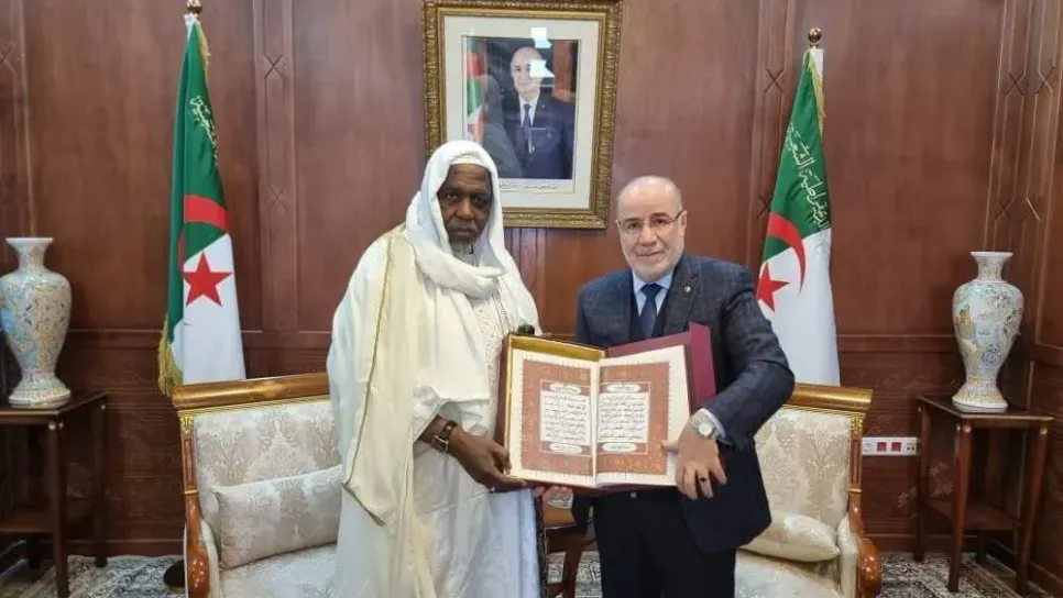 قدم وزير الشؤون الدينية والأوقاف يوسف بلمهدي، هدية للشيخ العالم والإمام الأكبر محمود ديكو من جمهورية مالي الشقيقة، متمثلة في نسخ من المصاحف التي أمر بطبعها رئيس الجمهورية عبد المجيد تبون.وحسب بيان للوزارة يتعلق الأمر ب "مصحف رودوسي، ومصحف الجزائر بصيغة برايل".