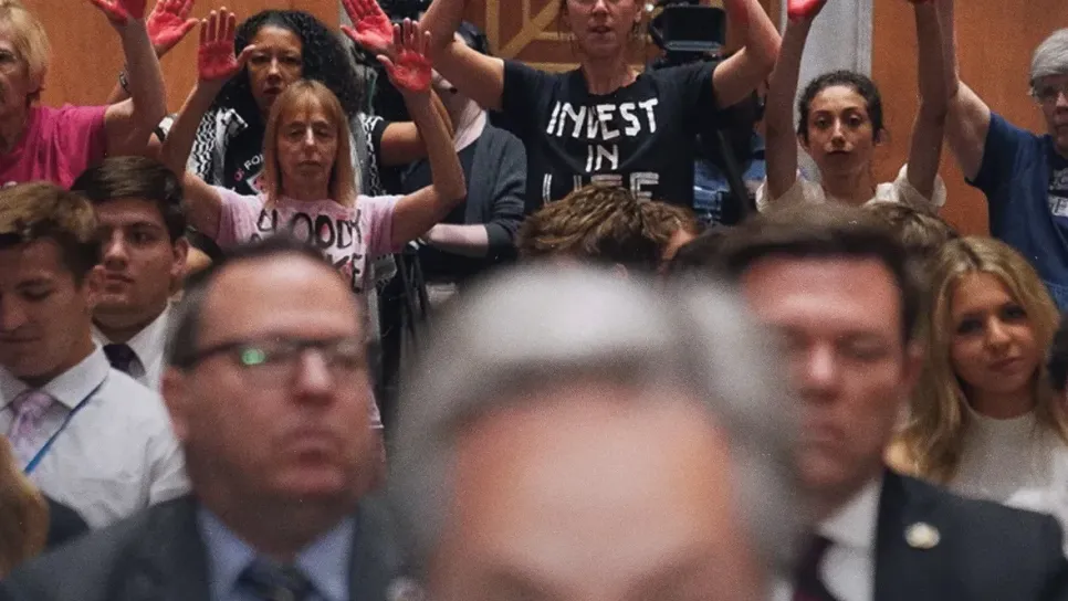 قاطع محتجون أمريكيون مداخلة لكاتب الدولة الأمريكي أنتوني بلينكن مجلس الشيوخ وقع هتافات "بلينكن الدموي..". واجه أحد أكبر داعمي حرب الإبادة غزة لحظات.