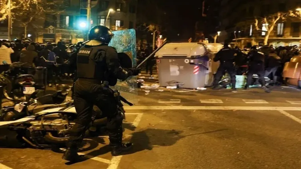 اندلعت أعمال الشغب مجددا في عدة مدن إسبانية في وقت متأخر من ليلة أمس الخميس بعد الاعتقال المثير للجدل لمغني راب بتهمة إهانة العائلة المالكة في إسبانيا. ووردت تقارير بشأن حدوث أعمال شغب ومظاهرات احتجاج مرة أخرى في وقت متأخر من يوم الخميس. وذكرت وسائل إعلام محلية أن المتظاهرين في برشلونة استخدموا صناديق القمامة لتشكيل حواجز وإشعال النار فيها. وأقام المتظاهرون حواجز وأضرموا فيها النيران وحطموا نوافذ بعض المتاجر وأزالوا لافتات الطرق ورشقوا مسؤولي إنفاذ القانون بالحجارة والزجاجات. كما تم الإبلاغ عن احتجاجات في فالنسيا وتاراجونا وساباديل وجيرونا وليدا وفيزكايا. وجرح عدة أشخاص، بينهم شرطي على الأق...