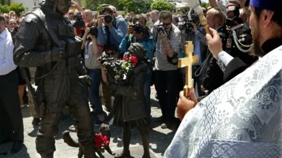ازاحت سلطات القرم السبت الستار عن تمثال يمثل جنديا روسيا شديد التسليح يمثل جنود القوات الخاصة الروسية التي سيطرت على شبه الجزيرة في اذار/مارس 2014. ولمناسبة العيد الوطني الروسي الذي يحتفل به الاحد، تم عرض التمثال البرونزي امام سكان سيمفيروبول عاصمة القرم. نصب التمثال الذي يناهز ارتفاعه مترين في جوار برلمان القرم، ويمثل جنديا يحمل بندقية كلاشنيكوف والعديد من الذخائر متطلعا الى فتاة صغيرة تقدم اليه الورود. وقال اوليغ بيلافنتسييف موفد الرئيس الروسي فلاديمير بوتين خلال احتفال "ندشن نصبا لجنودنا الروس العظماء، للجندي الروسي المعاصر". واضاف كما نقلت عنه وكالة ريا نوفوستي الروسية ان هذا الت...