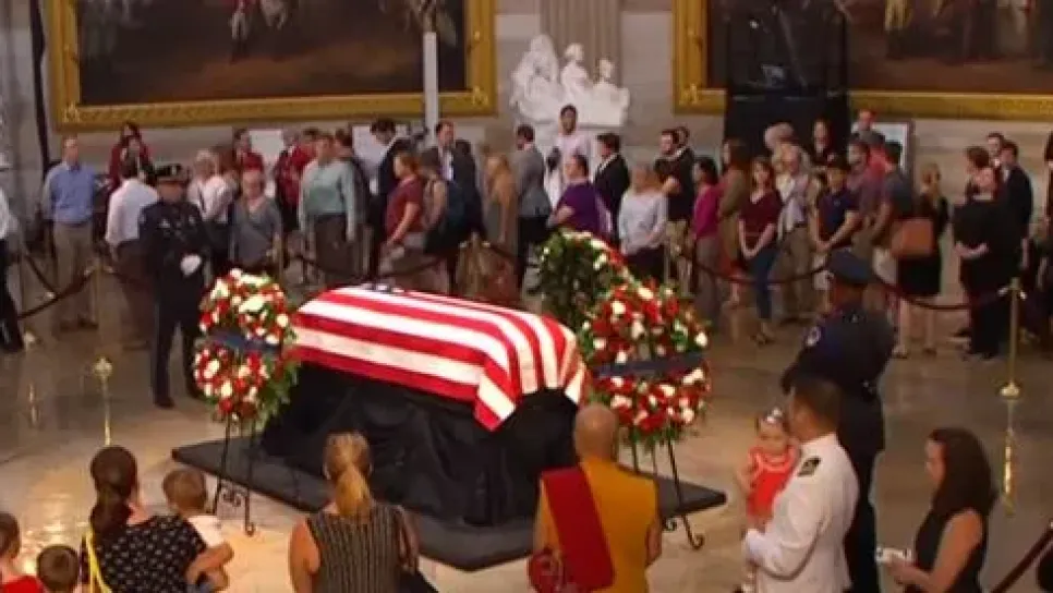 بدأت ظهر السبت مراسم تشييع جثمان السيناتور الأمريكي جون ماكين في كاتدرائية واشنطن الوطنية. وحضر المراسم الرئيسان الأمريكيان السابقان باراك أوباما و جورج بوش الابن، بينما غاب عنها الرئيس الأمريكي الحالي دونالد ترامب بطلب من ماكين الذي توفي بعد صراع طويل مع سرطان الدماغ. وتصدر الرئيسان الأمريكيان السابقان باراك أوباما وجورج بوش الابن المشيعين لتوديع بطل حرب فيتنام والمرشح الرئاسي السابق. كما شارك في المراسم رؤساء أمريكيون آخرون وأعضاء في مجلس الشيوخ ومسؤولون من حقبة حرب فيتنام وآخرون، للتعبير عن تقديرهم لرجل الدولة الذي توفي يوم 25 أوت نتيجة إصابته بسرطان الدماغ ، قبيل أيام من إتمام عامه الـ82...