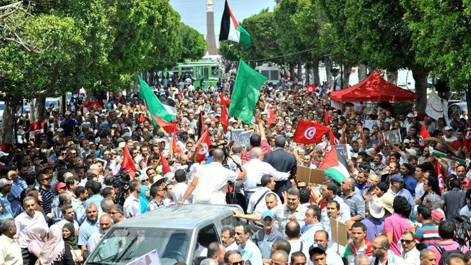 تظاهر المئات بينهم مسؤولون سياسيون في وسط تونس تعبيرا عن تأييدهم لـ"انتفاضة" الفلسطينيين، وذلك تلبية لدعوة حركة النهضة الاسلامية. وتجمع المتظاهرون في جادة الحبيب بورقيبة الرئيسية في وسط تونس رافعين اعلام تونس وفلسطين اضافة الى اعلام حركة حماس. وجرى التحرك وسط انتشار امني كثيف. والقيت خلاله كلمات استمع اليها المشاركون الذين لوح بعضهم بمناديل حركة النهضة. وقال النائب عن النهضة الصحبي عتيق لفرانس برس "انه تحرك رمزي بامتياز لاعلان تاييدنا للقضية والانتفاضة الفلسطينيتين". وأكد حسين الجزيري النائب ايضا عن النهضة والعضو السابق في الحكومة الاسلامية بعد ثورة 2011 "نحن جميعا...