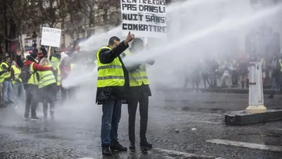 أعلنت الداخلية الفرنسية توقيف 130 شخصا من المشاركين في مظاهرات حركة "السترات الصفراء" التي اجتاحت مدن البلاد، احتجاجا على سياسات الرئيس ماكرون، وارتفاع أسعار المحروقات. وأدان الرئيس الفرنسي إيمانويل ماكرون ما أسماه "العنف الممارس من قبل المشاركين في مظاهرات السترات الصفراء". وكتب على "تويتر": "أشكر رجال الأمن على شجاعتهم واحترافهم، والعار للذين اعتدوا عليهم، وأساؤوا للمواطنين والصحفيين، وحاولوا تخويف المسؤولين المنتخبين. لا مجال لهذا العنف في الجمهورية". وهي التغريدة التي أججت غضب المحتجين، معتبرين تصريحات الرئيس بمثابة صب الزيت على النار.