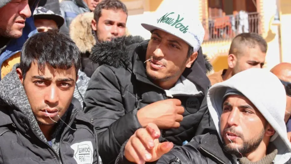 يخوض 42 مهاجرا تونسيا إضرابا مفتوحا عن الطعام في جزيرة لامبيدوزا الإيطالية، فيما خاط البعض منهم أفواههم لرفض الترحيل القسري لبلادهم، والمطالبة بنقلهم إلى الداخل الإيطالي.قام مهاجرون تونسيون يخوضون إضرابا مفتوحا عن الطعام أمام كنيسة في جزيرة لا مبيدوزا بخياطة أفواههم رفضا لترحيلهم القسري إلى بلادهم، وللمطالبة بنقلهم إلى الداخل الإيطالي. ويقدر عدد المهاجرين التونسيين المضربين 42 شخصا، وفق ما نقله مهاجر نيوز عن رمضان بن عمر المكلف بالإعلام في المنتدى التونسي للحقوق الاقتصادية والاجتماعية.وأكد بن عمر أنه يوجد أربعة مهاجرين من ضمن الـ42 قاموا بخياطة أفواههم. ويوجد هؤلاء المهاجرون في الجزيرة م...