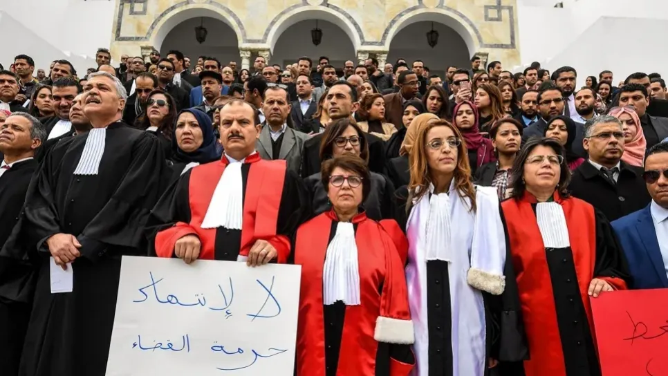 دعت جمعية القضاة التونسيين، اليوم الثلاثاء، إلى تعليق العمل في المحاكم يومي الأربعاء والخميس المقبلين، احتجاجا على قرار رئيس الجمهورية قيس سعيد حل المجلس الأعلى للقضاء. واعتبرت جمعية القضاة في بيان نشرته في صفحتها على "فايسبوك"، قرار الرئيس التونسي "انتهاكا صارخا لاستقلالية السلطة القضائية"، وقالت إن المجلس الأعلى للقضاء هو آخر ضمانة للفصل بين السلط وتحقيق التوازن بينها. وأعلنت جمعية القضاة كذلك عن تنظيم وقفة احتجاجية أمام مقر المجلس الأعلى للقضاء يوم الخميس المقبل، ودعت جميع القضاة العدليين والإداريين والماليين للمشاركة فيها بكثافة بزيهم القضائي. كما دعت "كل مكونات المجتمع المدني والعائل...