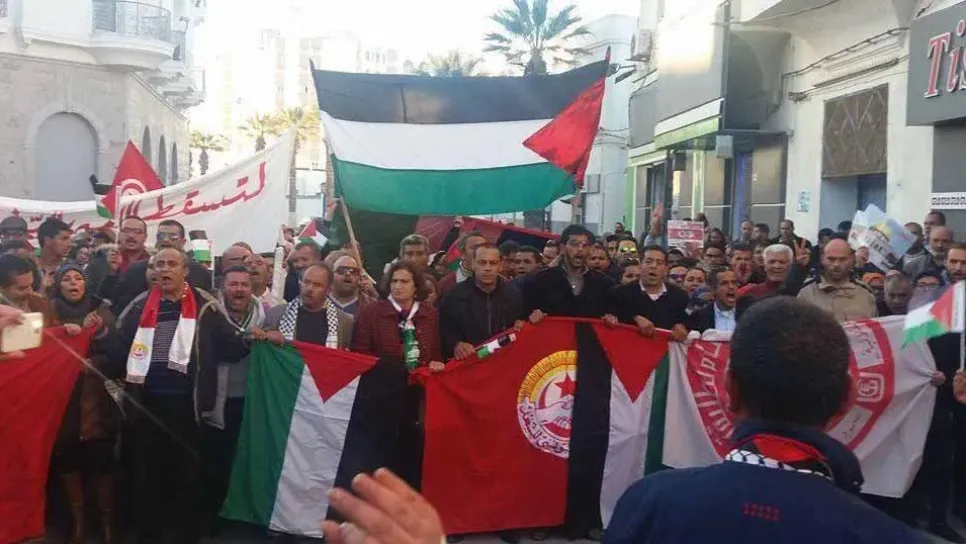 طالب متظاهرون في العاصمة تونس الحكومة والبرلمان بإقرار قانون يجرم كل محاولات وأشكال التطبيع السياسي والثقافي والاقتصادي مع إسرائيل. ونظم الائتلاف التونسي من أجل فلسطين اليوم السبت مسيرة وسط العاصمة بمناسبة يوم الأرض شارك فيها مئات التونسيين المؤيدين للقضية الفلسطينية، طالبوا خلالها بسن قانون ضد التطبيع في تونس. ورفع المتظاهرون علما فلسطينيا كبيرا وشعارات تؤيد نضال الشعب الفلسطيني، وتستنكر الجرائم الإسرائيلية ضد الفلسطينيين، وتدعو إلى عمل عربي وإسلامي مشترك لأجل القضية الفلسطينية. وقبل سنة أخفق البرلمان التونسي في سن قانون يجرم التطبيع بسبب عدم تحمس بعض الكتل البرلمانية لمش...