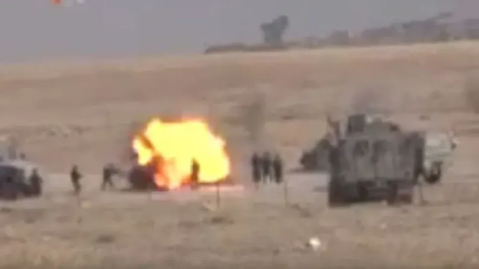 بث "تلفزيون كردستان" لقطات تظهر إقدام أحد عناصر داعش تفجير نفسه وسط مقاتلين قوات البشمركة، تشارك عملية استعادة مدينة الموصل العراقية التنظيم المتشدد..