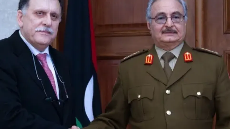 رفض القائد العسكري الليبي خليفة حفتر اليوم الثلاثاء، مقابلة فايز السراج رئيس حكومة الوفاق خلال وجودهما في القاهرة. وأكد المكتب الإعلامي للقيادة العامة للقوات المسلحة الليبية، "أن المشير أركان حرب خليفة أبو القاسم حفتر رفض مقابلة رئيس المجلس الرئاسي الليبي فائز السراج في القاهرة". وقال مكتب الإعلام للجيش الليبي التابع لحفتر ومقره بنغازي عبر صفحته الرسمية على موقع التواصل الاجتماعي "فيس بوك" الثلاثاء: "القائد العام للقوات المسلحة العربية الليبية المشير أركان حرب خليفة أبو القاسم حفتر يرفض مقابلة السراج بالقاهرة". وكان من المفترض أن يعقد حفتر لقاء مع رئيس المجلس الرئاسي لحكومة الوفاق الو...