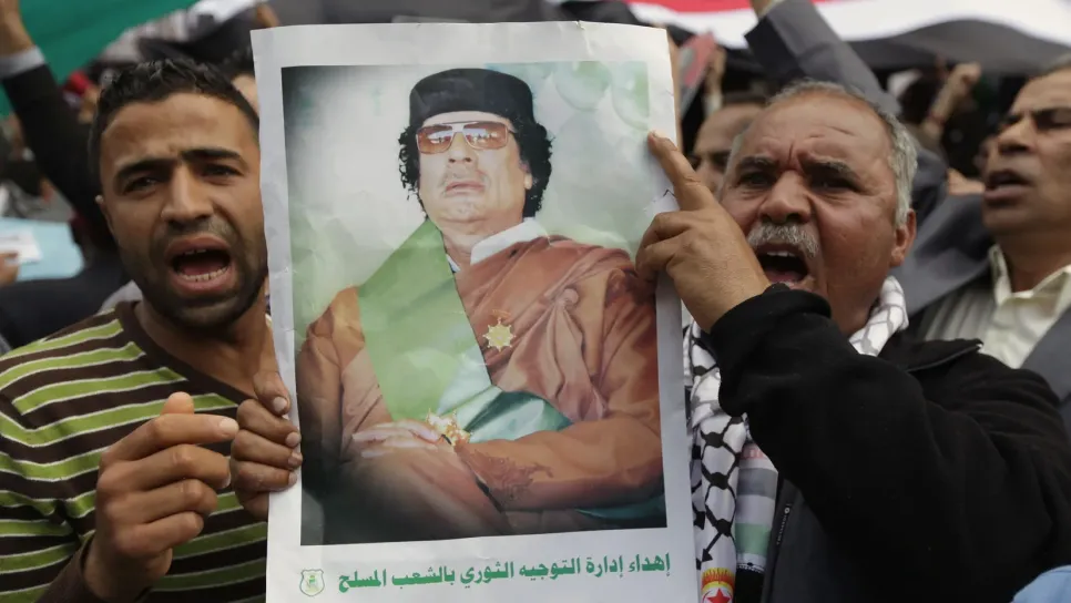 نظم أنصار الزعيم الليبي السابق معمر القذافي مظاهرة نادرة في مدينة بنغازي بشرق ليبيا يوم أمس الثلاثاء وهتفوا "معمر..معمر" لكنهم تفرقوا بعد أن فتح معارضون النار ورشقوهم بالحجارة. ولم يصب أحد بسوء على ما يبدو بين عشرات من أنصار القذافي الذي أطيح به في عام 2011، حيث هتف المتظاهرون "الله ومعمر وليبيا وبس" بينما لوحوا بالعلم الأخضر الذي كان علم البلاد في عهد النظام السابق، لكنهم تفرقوا بعد أن أطلق سكان حمل بعضهم علم ليبيا الحالي النار. وحمل المؤيدون صورا للقذافي الذي حكم البلاد لمدة 42 عاما وطالبوا بالإفراج عن ابنه سيف الإسلام الذي أصدرت محكمة في طرابلس الأسبوع الماضي حكما غيابيا بإعدامه بتهمة...