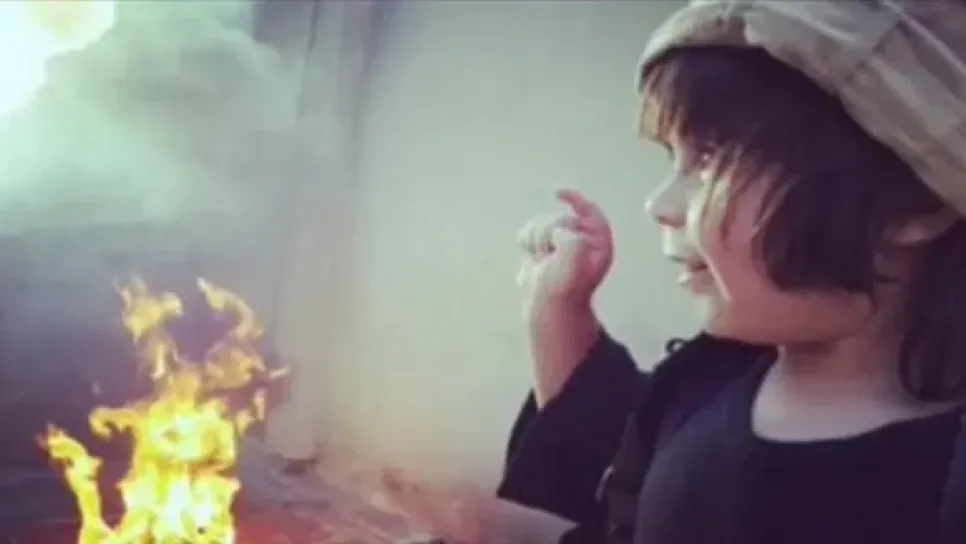 نشر أحد مناصري تنظيم داعش صورا لطفل لم يتجاوز الثالثة من عمره يحرق دميته على طريقة التنظيم، حيث كان نفس الطفل قد ظهر في تسجيل مصور الأسبوع الماضي وهو يقوم بذبح دميته. ويظهر الطفل في الصور وهو يقوم بإشعال قطعة من الحبل تصل لرأس دميته، في حادثة مشابهة لإحراق الطيار الأردني أو إحراق العراقيين الذين شواهم تنظيم داعش أحياء قبل يومين.