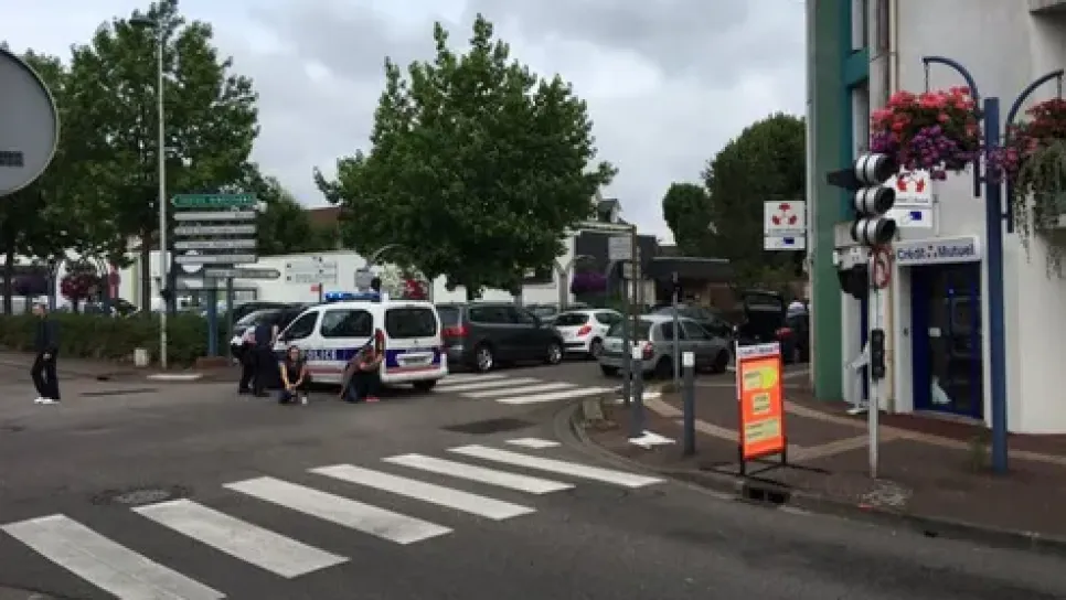 قالت وكالة أعماق للأنباء التابعة لتنظيم الدولة الإسلامية في بيان اليوم الثلاثاء إن منفذي الهجوم على كنيسة بمنطقة نورماندي في شمال فرنسا هما عنصران من التنظيم المتشدد. وأضافت أنهما "نفذا العملية استجابة لنداءات استهداف دول التحالف الصليبي". أكدت الشرطة الفرنسية تصفية رجلين مسلحين اقتحما كنيسة في شمال فرنسا واحتجزا رهائن فيها اليوم الثلاثاء، معلنة مقتل قس ذبحا على يد المهاجمين. وكانت الشرطة أعلنت أن رجلين تسلحا بالسكاكين، احتجزا راهبتين وقسا إلى جانب عدة مصلين داخل الكنيسة، الواقعة في بلدة بمقاطعة نورماندي شمال البلاد، قبل أن تقتحم قوات الشرطة الكنيسة لتحرر الرهائن وتقتل المسلحين. ول...