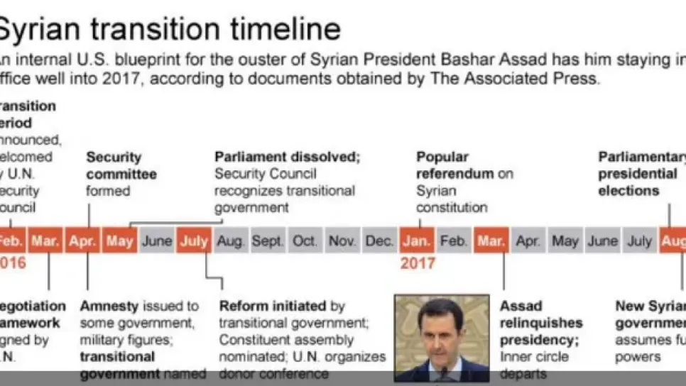 لا تعتقد الإدارة الأمريكية أن رحيل بشار الأسد عن السلطة سيكون قبل مارس عام 2017 وذلك بناءا على وثيقة اطلعت عليها "اسوشيتد برس". ويعتمد الجدول على خطة بلورها لقاء دولي حول سوريا في فيينا في نوفمبر الماضي وتبنتها الأمم المتحدة لاحقا، وتقتضي هذه الخطة أن تشهد سوريا انتخابات رئاسية وبرلمانية في أوت 2017، أي بعد 19 شهرا من الآن، على أن تقوم سلطة انتقالية بإدارة شؤون البلاد حتى هذا الموعد. وبحسب الوثيقة فإن العملية السياسية الجديدة تبدأ 25 الشهر القادم بإجراء مباحثات سلام بين النظام و"المعارضة السورية" في جنيف، وفي شهر نيسان عام 2016، سيتم تشكيل لجنة أمنية وسيرافق ذلك إعلان عفو عن بعض أعضاء ال...