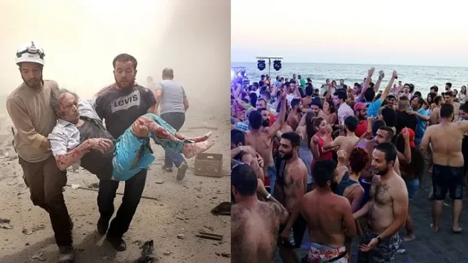 أظهرت مجموعة من الصور نشرتها صحيفة "الدايلي ميل" البريطانية كشفت التناقض الكبير الذي يعيشه الشعب السوري، في ظل الحرب الطاحنة التي تُخيم أثارها على غالبية المدن السورية. وأظهرت صور التقطت من مدينة اللاذقية الساحلية شباب يحتفلون على الشاطئ تحت أشعة الشمس، في مشاهد ليست متوقعة في سوريا التي تمزقها الصراعات. وتجمع حشد كبير من الشباب على رمال الشاطئ في اللاذقية الساحلية، يرقصون على أنغام الموسيقى الصاخبة، ويجلسون في مجموعات للدردشة، أو لتدخين الشيشة أو الاستمتاع بأشعة الشمس. من جهة أخرى وعلى بعد كيلومترات قليلة من هذا الحشد تقع مدينة حلب تحت الحصار منذ أسبوعين منذ سيطرة قوات...
