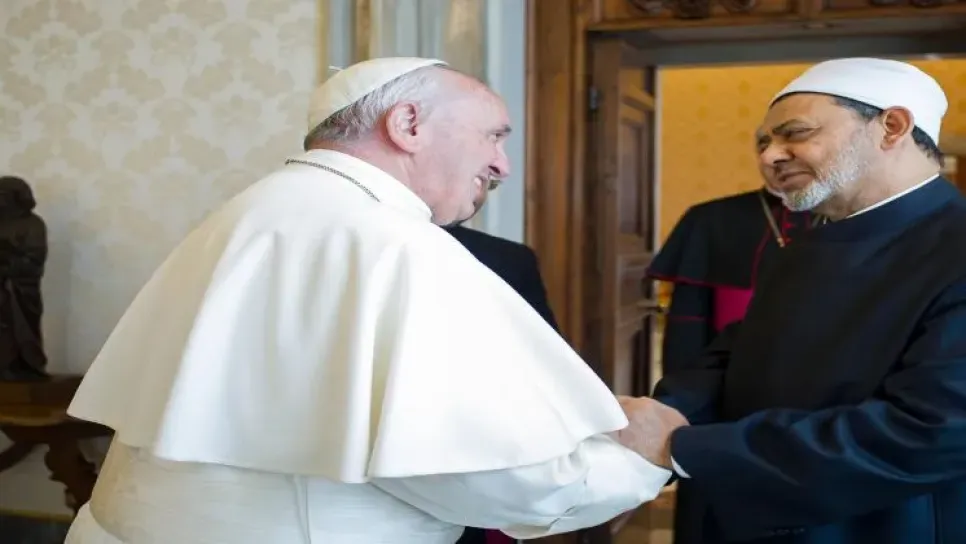 دعا بابا الفاتيكان، فرنسيس، اليوم الجمعة، كل الزعماء الدينيين إلى الاتحاد في نبذ التطرف الديني ومواجهة "بربرية من يحرض على الكراھية والعنف". جاء ذلك خلال كلمته بالمؤتمر العالمي للسلام، بقاعة مؤتمرات الأزهر، شرقي القاهرة، الذي انطلق أمس الخميس بحضور قيادات دينية من مختلف أنحاء العالم بينهم شيخ الأزهر، احمد الطيب، والتي بدأها بـ"السلام عليكم". وأضاف بابا الفاتيكان: "لن يكون هناك سلام دون تعليم للأجيال الشابة، ولن يكون هناك تعليم ما لم يلب حاجات الشباب الأساسية". وتابع : "علينا أن نعزز نشر الوعي والهوية المنفتحة على الجميع، وعلى كل الزعماء الدينيين الاتحاد ورفض أي شكل من أشكال العنف الذي...