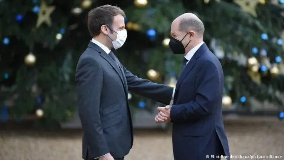في مكالمة هاتفية مع الرئيس الروسي، شدد المستشار الألماني والرئيس الفرنسي على أن حل النزاع بأوكرانيا يجب أن يكون عبر مفاوضات بين موسكو وكييف.    أكد المستشار الألماني أولاف شولتس والرئيس الفرنسي إيمانويل ماكرون، للرئيس الروسي فلاديمير بوتين خلال مكالمة هاتفية، اليوم الخميس، على أن حل النزاع في أوكرانيا يجب أن يأتي عبر "مفاوضات بين أوكرانيا وروسيا". وأوضح مصدر في الحكومة الألمانية أن شولتس وماكرون أصرا على أن "أي حل لهذه الأزمة يجب أن يأتي عبر مفاوضات بين أوكرانيا وروسيا". وخلال هذه المكالمة أيضا، طالبت ألمانيا وفرنسا روسيا "بوقف فوري لإطلاق النار". من ناحيته، أفاد المتحدث با...