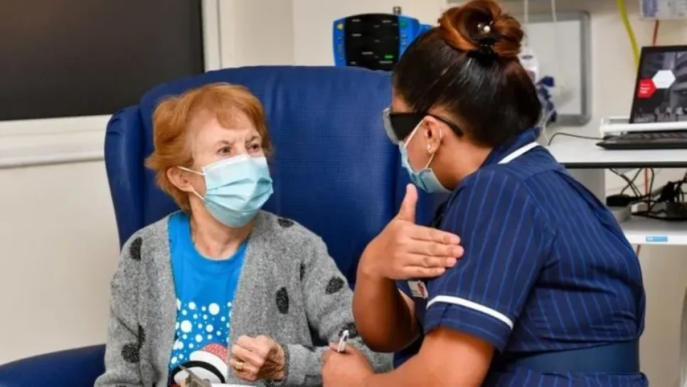 أصبحت العجوز ذات الـ 90 سنة من العمر، أول شخص يحصل على حقنة تطعيم ضد مرض "كوفيد-19" في برنامج التطعيم الشامل الذي بدأ في جميع أنحاء بريطانيا. وقالت مارغريت كينان، التي ستدخل عامها 91 الأسبوع المقبل، إنها كانت "أفضل هدية مبكرة لعيد ميلاد". وتناولت الحقنة في الساعة 06:31 صباحا بتوقيت غرينتش - وهي أول جرعة من 800.000 جرعة من لقاح فايزر بيونتيك، الذي سيعطى للمرضى في الأسابيع المقبلة. ومن المتوقع وصول ما يقارب 4 ملايين جرعة بحلول نهاية الشهر الحالي.
