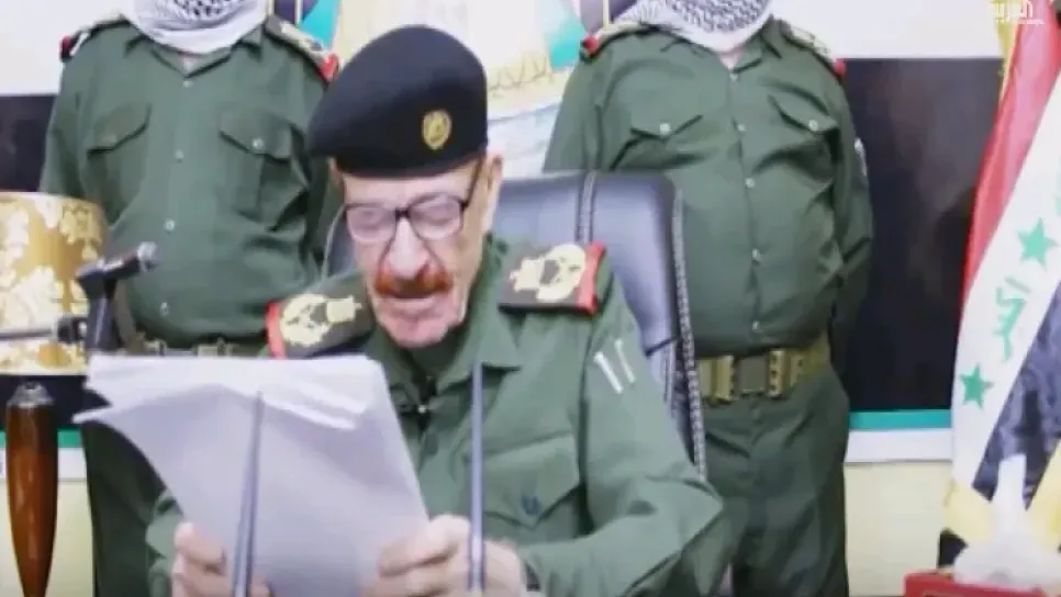 دعا عزت الدوري نائب رئيس العراق الأسبق صدام حسين، الدول العربية إلى الاصطفاف في وجه إيران تحت راية التحالف العربي بقيادة السعودية. وأكد الدوري أن التعامل مع الأزمة اليمنية له طريقتين هما إجبار إيران وعملائها على الانصياع لقرارات مجلس الأمن ومخرجات الحوار الوطني في ظل الحكومة الشرعية وبرعاية دول مجلس التعاون، وتصعيد مطاردة عملاء إيران، وإنهاء كل قدراتهم وإمكاناتهم. وقال في تسجيل بثته قناة العربية إن ما يحصل في العراق من قبل إيران وميليشياتها تتحمله الإدارة الأمريكية، إذا لم تتحرك لإنقاذ العراق من الهيمنة الإيرانية.