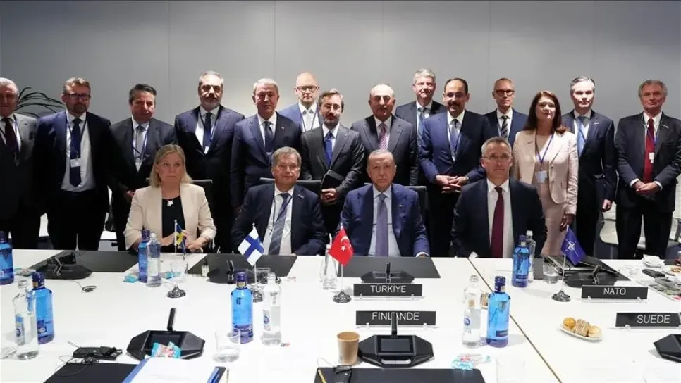 نقلت وكالة "الأناضول" عن مصادر في الرئاسة التركية أن أنقرة نالت ما أرادته من فنلندا والسويد الراغبتين في الانضمام إلى حلف شمال الأطلسي "الناتو"، وعززت من مكاسبها في مكافحة الإرهاب. وأمس الثلاثاء، وقعت تركيا والسويد وفنلندا، مذكرة تفاهم ثلاثية بشأن عضوية البلدين الأخيرين في حلف "ناتو"، على هامش قمة التكتل في العاصمة الإسبانية مدريد. وجاء توقيع مذكرة التفاهم المذكورة، عقب لقاء رباعي ضم الرئيس التركي رجب طيب أردوغان، ونظيره الفنلندي سولي نينيستو، ورئيسة الوزراء السويدية ماغدالينا أندرسون، إلى جانب أمين عام "ناتو"، ينس ستولتنبرغ. ووقع المذكرة كلا من وزير الخارجية التركية مولود تشاووش أوغلو، ونظ...