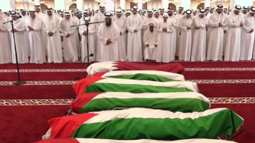 شيّعت قطر، بعد صلاة عصر اليوم الخميس في العاصمة الدوحة، شهداء الهجوم الصهيوني غير المسبوق الذي استهدف مبانيَ سكنية في المدينة يوم الثلاثاء الماضي، وذلك بمشاركة أمير البلاد الشيخ تميم بن حمد آل ثاني.