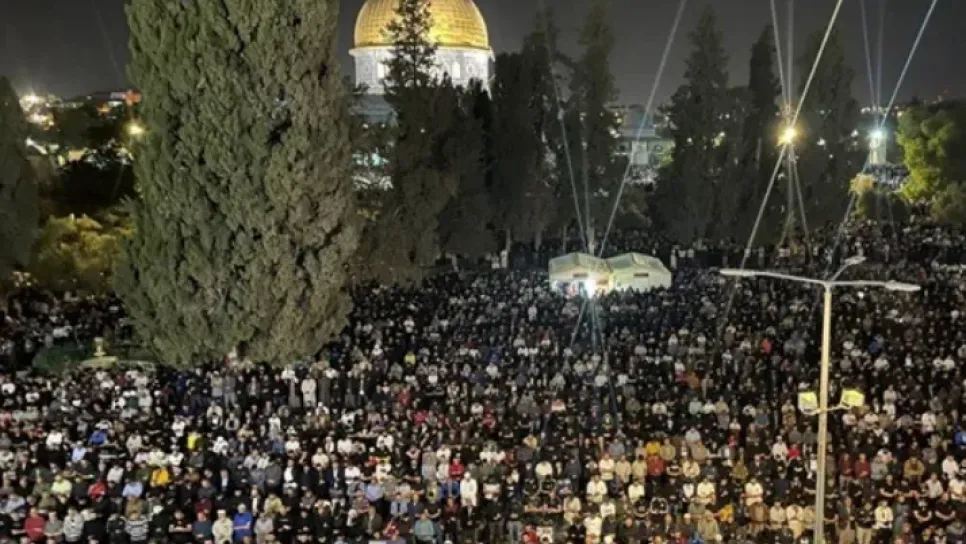 اعتدت قوات الاحتلال الصهيوني، فجر الخميس، على المصلين والمعتكفين، في المسجد الأقصى المبارك، بالتزامن مع إحياء نحو ربع مليون فلسطيني لليلة القدر. وقالت مصادر محلية، إن قوات الاحتلال اقتحمت المسجد الأقصى من جهة باب المغاربة، واعتلت الأسطح الملاصقة له، وأطلقت قنابل الصوت والغاز، باتجاه المصلين والمعتكفين، ما أدى إلى إصابة عدد منهم بحالات اختناق. وأحيا نحو ربع مليون مصل، جاءوا من مدينة القدس ومن أراضي الـ 48، وممن تمكنوا من الوصول من الضفة، ليلة القدر (ليلة السابع والعشرين من شهر رمضان)، في رحاب المسجد الأقصى المبارك. وكانت قوات الاحتلال كثفت من تواجدها في مدينة القدس ونشرت نحو 3 آلاف عنصر في م...