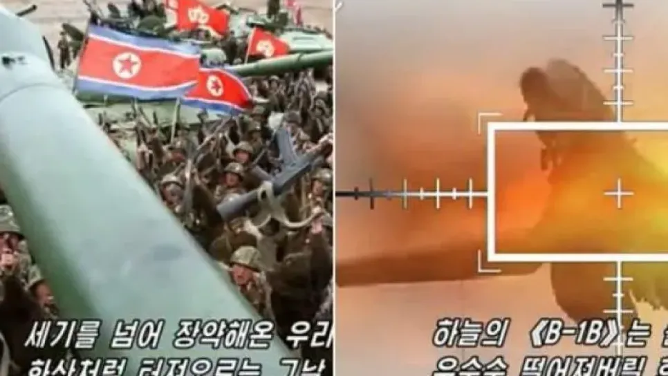 بث زعيم كوريا الشمالية مقطع مصور دعائي عسكري يصور قوات كورية شمالية تفجر حاملة طائرات أميركية. وذكرت صحيفة "ديلى ميل" البريطانية أن وسائل الإعلام الرسمية لكوريا الشمالية بثت مقطع مصور يعرض لقطات خيالية لقوات بيونج يانج تُدمر طائرات أمريكية وقاذفات قنابل. ووفقًا لـ"نيوزويك"، عرض الفيديو لقطات من تدريبات "النسر الصغير" بين كوريا الجنوبية وأمريكا، التي أغضبت كوريا الشمالية منذ فترة طويلة. وعرضت قناة "Uriminzokkiri"، التي بثت الفيديو على موقع "يوتيوب"، مقاطع أخرى مثيرة للجدل تصور القوات الكورية الشمالية تفجر الولايات المتحدة الأمريكية. وفى 2013، نُشر مقطع مصور لرجل كوري شمالي يحلم بصوا...