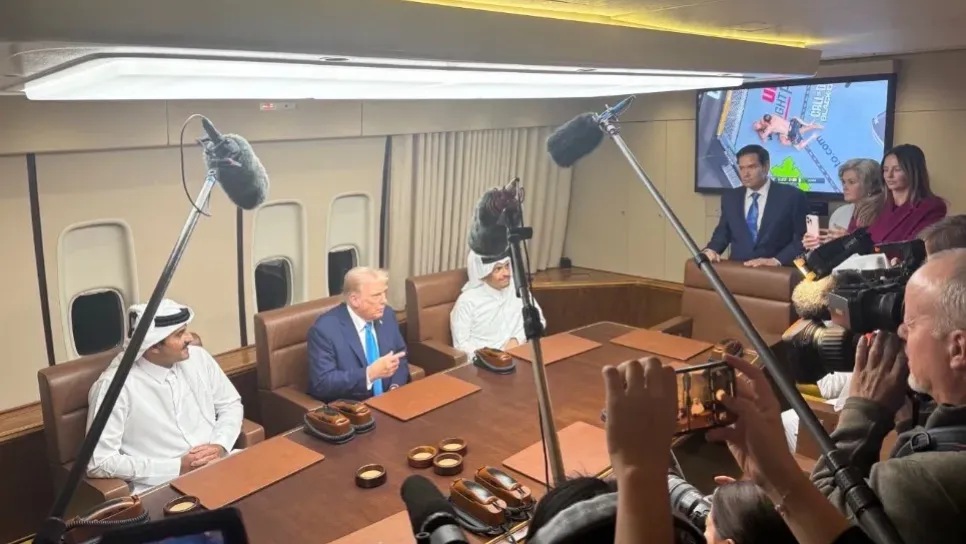 وقال ترامب، من على متن الطائرة "لدينا شرق أوسط آمن الآن ونريد أن يبقى كذلك". وأضاف "قطر حليف عظيم للولايات المتحدة" وفق المصدر نفسه.