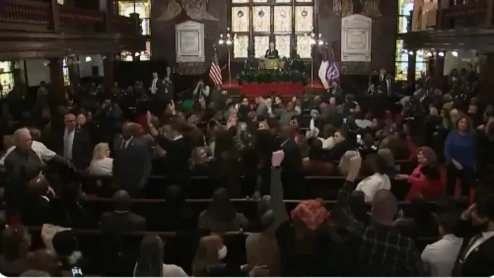 تعرض الرئيس الأمريكي، جو بايدن، إلى موقف محرج خلال إلقاءه كلمة داخل إحدى الكنائس، اليوم الإثنين. وقاطع متظاهرون كلمة بايدن مطالبين بوقف إطلاق النار في غزة وهاتفين "الحرية لفلسطين"، قبل أن يتم إخراجهم من طرف مصالح الأمن. وردا على المحتجين قال بايدن: "أتفهم مشاعركم وأعمل بكل ما أستطيع لدفع إسرائيل لتقليص عملياتها بغزة". Pro-Palestine protesters SHOUT DOWN Biden at speech at Mother Emanuel AME Church pic.twitter.com/2pY16YfJhN — Benny Johnson (@bennyjohnson) January 8, 2024