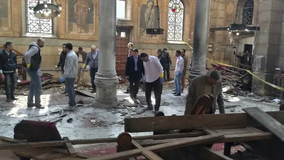 تعيش مصر حالة حداد لثلاثة أيام على إثر الإعتداء الإرهابي الذي استهدف, اليوم الأحد, الكنيسة البطرسية الملاصقة للكاتدرائية المرقسية بالعباسية, مخلفا 25 قتيلا و49 مصابا على الأقل, وسط تنديدات شديدة و توعدات ب"القصاص العادل". و أعلن الرئيس المصري, عبد الفتاح السيسي, حالة الحداد في البلاد لمدة ثلاثة أيام, وتوعد ب"القصاص العادل" لضحايا التفجير الذي استهدف اليوم الأحد الكنيسة البطرسية, كما أدان ب"بالغ الشدة" هذا "العمل الإرهابي الآثم" الذي أسفر لحد الآن عن مقتل 25 شخصا وإصابة 49 آخرين. وأكد بيان الرئاسة المصرية "أن هذا الإرهاب الغادر يستهدف الوطن بأقباطه ومسلميه, وأن مصر لن...