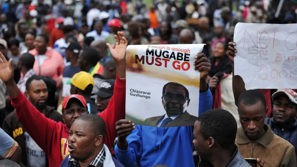 خرجت حشود من المتظاهرين المدعومين من الجيش إلى شوارع عاصمة زيمبابوي هراري، السبت، للمطالبة باستقالة الرئيس روبرت موغابي. وذكرت وكالة "أسوشيتد برس" الأمريكية، أن المتظاهرين حملوا صوراو لافتات لقائد الجيش كونستانتينو تشيونغا، كتبوا عليها "إلى الأمام يا لواءنا ". و لوح المتظاهرون بلافتات كتبوا عليها:"لقد طفح الكيل، على موغابي ان يستقيل" و"أرقد بسلام يا موغابي" و"لا لسلالة موغابي". يأتي هذا بعد اندلاع أزمة سياسية غير مسبوقة في زيمبابوي، الأسبوع الماضي، حيث بسط الجيش سيطرته على السلطة ووضع رئيس الدولة الذي يتولى السلطة منذ 1980 في الإقامة الج...