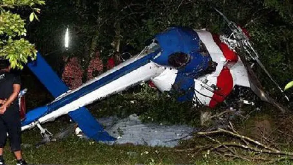 لقي شخصان مصرعهما في تحطم مروحية تابعة لمكتب البحث والإنقاذ الإندونيسي في مقاطعة وسط جزيرة جاوة في إندونيسيا. وقال مسؤول في وكالة الكوارث الاندونيسية في تصريح صحفي إن مروحية تابعة لمكتب البحث والإنقاذ تحطمت في مقاطعة وسط جاوة اليوم الاحد مما أسفر عن مقتل شخصين ونجاة آخرين. وأضاف أنه لم يتم تحديد سبب تحطم المروحية أو هوية الضحايا.