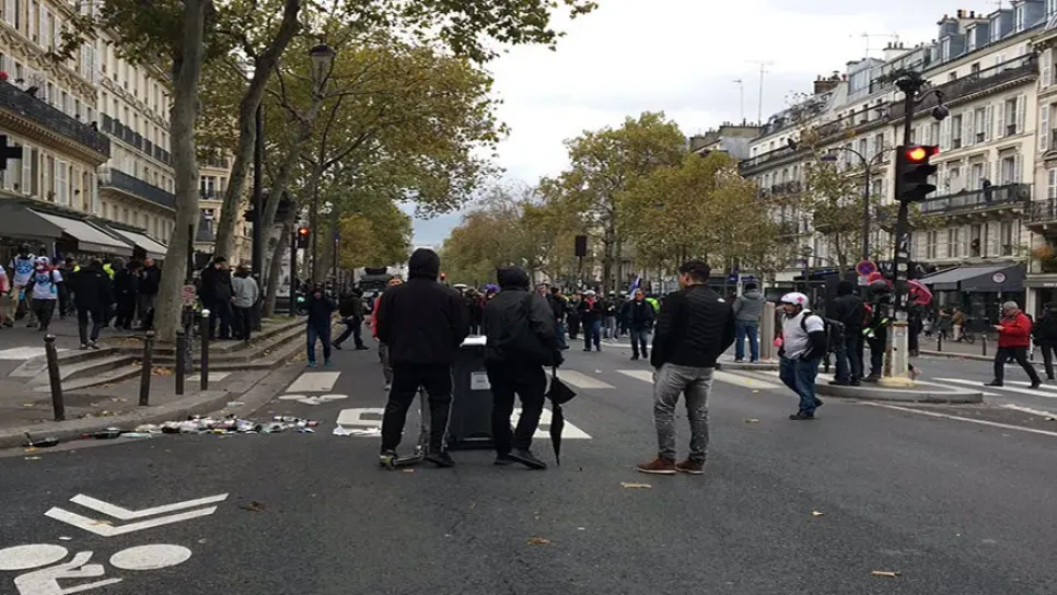 أطلقت شرطة باريس الغاز المسيل للدموع في شمال غرب وجنوب العاصمة الفرنسية باريس يوم السبت لصد محتجين في الذكرى السنوية الأولى لمظاهرات السترات الصفر المناهضة للحكومة. وفي ساحة بلاس ديتالي بجنوب باريس أشعل محتجون، ارتدى الكثيرون منهم ملابس سوداء وغطوا وجوههم، النار في صناديق قمامة وأطلقوا مقذوفات على شرطة مكافحة الشغب بينما كانوا يضعون المتاريس. واندلعت اشتباكات بين الشرطة ومتظاهرين قرب محطة بورت دو شانبرييه فيما كان المحتجون يستعدون للسير باتجاه محطة جار دوسترليتس. وتدخلت الشرطة لمنع بضع مئات من المتظاهرين من احتلال الطريق الدائري في باريس، ما أدى إلى اعتقال 33 شخصا بحلول الساعة 10:30 بتوقيت غ...