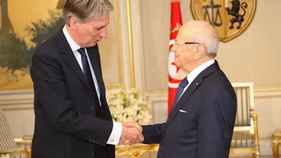جدد وزير الخارجية البريطاني فيليب هاموند اليوم الجمعة تأكيد تضامن بلاده مع تونس إثر العملية الإرهابية, وفقا لبيان صادر عن الرئاسة التونسية. وذكرت وكالة تونس افريقيا للانباء (وات) ان هاموند اكد في تصريح صحفي اثر استقباله اليوم من قبل الرئيس التونسي الباجي قايد السبسي, "الإرادة القوية للحكومة البريطانية لمرافقة تونس في كسب الرهانات الأمنية ومساندة جهودها في إنجاح البرامج الإقتصادية والإصلاحات الجوهرية الكفيلة بإعادة النمو للإقتصاد وخلق فرص عمل". ذكر ان فيليب هاموند يودى اليوم زيارة عمل الى تونس تندرج فى اطار تعزيز اواصر الصداقة والتعاون بين البلدين.