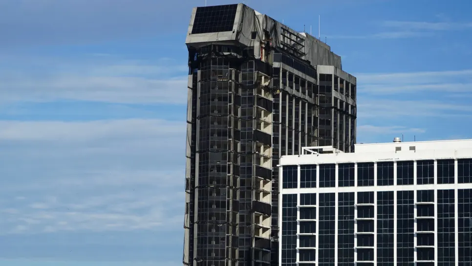 تم، اليوم الأربعاء، هدم مبنى فندق وكازينو "ترامب بلازا" السابق الذي بناه الرئيس الأمريكي السابق دونالد ترامب في أتلانتيك سيتي. وفي عام 2014 أغلق الفندق المؤلف من 39 طابقا الذي تم بناؤه عام 1984 أبوابه بعد إفلاسه. وكانت هناك خططا لتنظيم مزادات من أجل الحق في ضغط الزر لهدم المنزل الرمزي، وتحويل ما سيجمع من الأموال إلى مشروع خيري، لكن صاحب المبنى وحليف ترامب، كارل أيكن رفض هذه الاقتراحات لدواع أمنية.