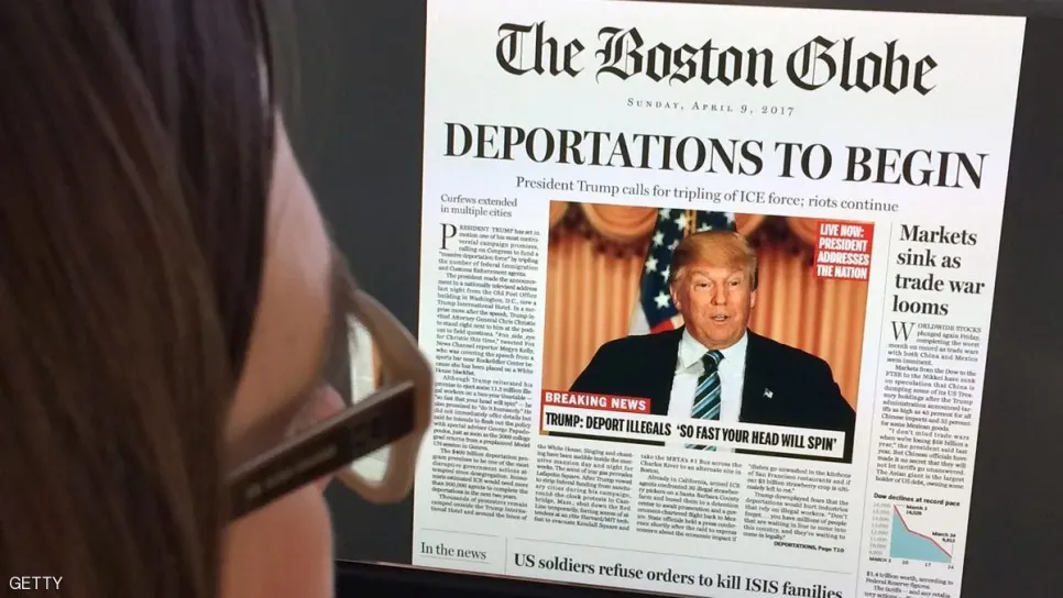 نشرت صحيفة أميركية قصة وهمية على صفحتها الأولى لما ستبدو عليه الأحوال في حال فوز الملياردير الجمهوري المثير للجدل دونالد ترامب بالرئاسة، منددة برؤيته "المقلقة للغاية" و"غير الأميركية". صحيفة "ذي بوسطن غلوب" عنونت مقالها الذي حمل تاريخ 10 نيسان/أبريل 2017 "بدء عمليات الترحيل، دونالد ترامب يدعو إلى زيادة تكثيف ضوابط الهجرة والجمارك ثلاثة أضعاف، استمرار أعمال الشغب"، ونشرت الصحيفة المقال على صفحتها الأولى مرفقا بمقال ينتقد حملة ترامب بشكل لاذع داعية الى معارضتها "بشكل كثيف وفاعل". وذلك وفقا لوكالة "فرانس برس". يأتي نشر المقال قبل 3 أشهر من تسمية مؤتمر الحزب الجمهوري مرشحه للرئاسة مع ت...