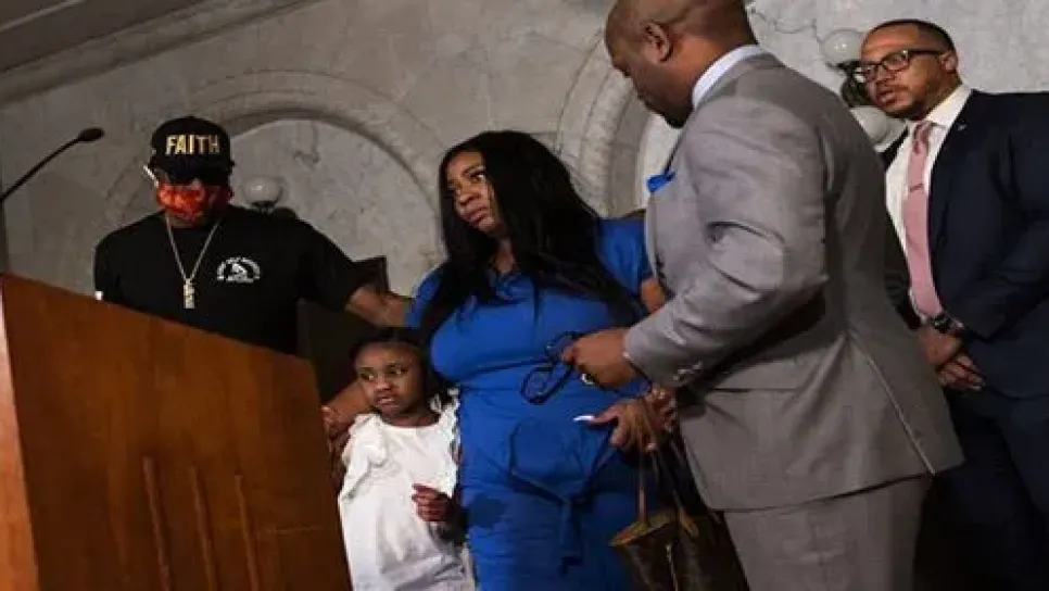 ألقت روكسي واشنطن، زوجة جورج فلويد، كلمة عاطفية حول وفاته وتأثير ذلك على ابنتهما البالغة من العمر ست سنوات. وقالت روكسي، حسب ما نقلت قناة "الحرة" الأمريكية، عن الضباط المتهمين بقتل زوجها: "في نهاية المطاف، يعودون إلى أسرهم، جيانا (ابنة جورج) ليس لديها أب. لن يراها تكبر أبدًا، وتتخرج، لن يمشي بها في الممر. إذا كانت هناك مشكلة وتحتاج إلى والدها، فلن يكون لديها ذلك بعد الآن". وتوفي فلويد بعد أن ركع ضابط شرطة على عنقه لعدة دقائق في مينيابوليس، وتم اتهام الضابط ديريك شوفين بالقتل من الدرجة الثالثة والقتل الخطأ. وأضافت روكسي في مؤتمر صحافي نقلته عدة وسائل إعلام أميركية مباشرة على الهواء: "أنا هنا...