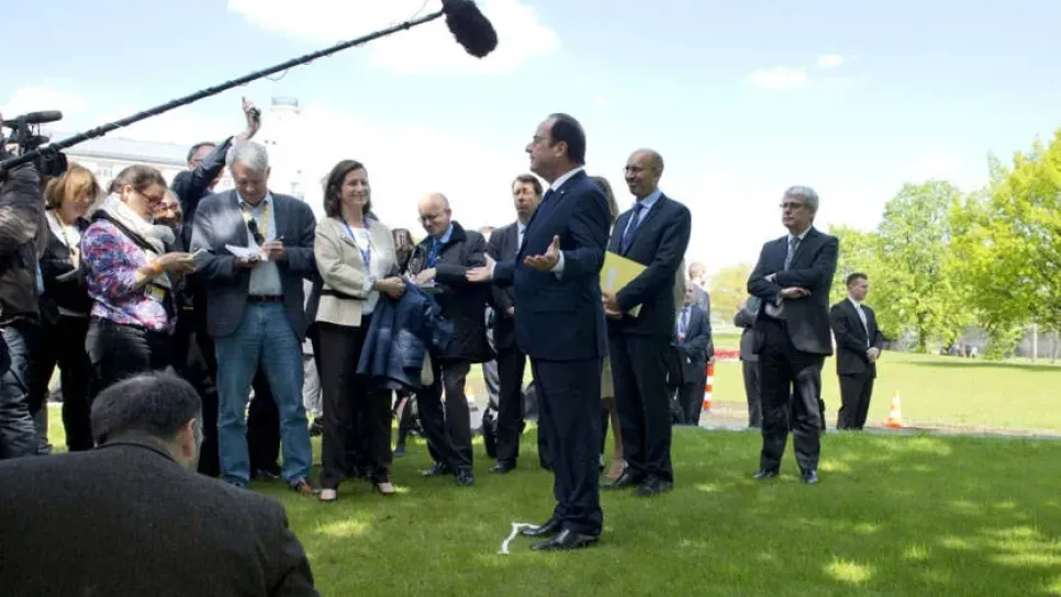 دعا الرئيس الفرنسي فرانسوا هولاند لبذل جهود دولية جديدة للتوصل الى اتفاق سلام في سوريا قائلا ان استيلاء تنظيم الدولة الاسلامية على مدينة تدمر التاريخية يظهر الضعف الشديد للرئيس السوري بشار الاسد. وأشار، بعد قمة للاتحاد الاوروبي في ريجا، إلى اننا "ندعو مجددا للاعداد لجنيف جديدة" في اشارة الى مؤتمرات سابقة كانت تهدف الى عملية انتقال سياسي من نظام الاسد الى المعارضة التي يدعمها الغرب والتي خسرت ايضا الارض امام تنظيم الدولة الاسلامية. واعتبر انه "مع وجود نظام ضعف بشدة .ومع وجود بشار الاسد الذي لا يمكن ان يكون مستقبل سوريا يجب ان نبني سوريا جديدة تتخلص بالطبع من النظام ومن بشار الاسد وايضا وقبل ك...