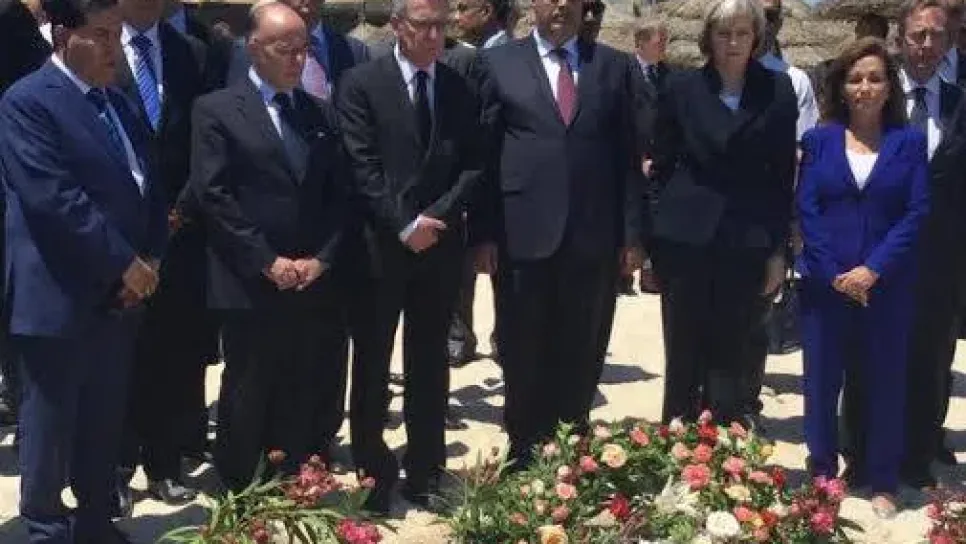 وصل اليوم الاثنين وزراء داخلية ألمانيا وفرنسا وبريطانيا إلى مكان العملية الإرهابية في مدينة سوسة الساحلية بنزل امبريال مرحبا بالقنطاوي. وقام الوزراء بوضع اكليل من الزهور في الشاطئ الذي وقعت فيه العملية. للتذكير فإن أغلب ضحايا الهجوم الإرهابي من بريطانيا وألمانيا وفرنسا.