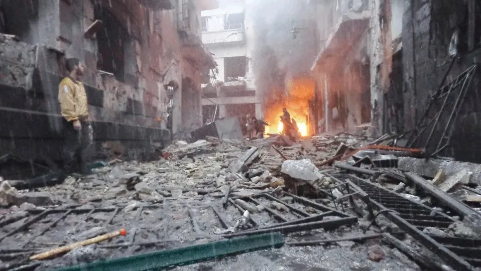قتل عشرة أشخاص على الأقل بينهم طفلان وأصيب خمسون آخرون بجروح جراء غارات جوية شنها الطيران الحربي التابع لقوات النظام على مدينة دوما في ريف دمشق الثلاثاء، وفق ما أعلن المرصد السوري لحقوق الإنسان. وقال المرصد في بريد الكتروني "قتل عشرة أشخاص بينهم طفلان على الأقل جراء قصف للطيران الحربي على مناطق في مدينة دوما في الغوطة الشرقية ظهر اليوم". وأوضح مدير المرصد رامي عبد الرحمن لوكالة فرانس برس أن القصف الجوي استهدف وسط مدينة دوما وأسفر عن إصابة خمسين شخصا بجروح على الأقل، لافتا إلى وجود عدد من الجرحى في حالات حرجة ومفقودين تحت الأنقاض.