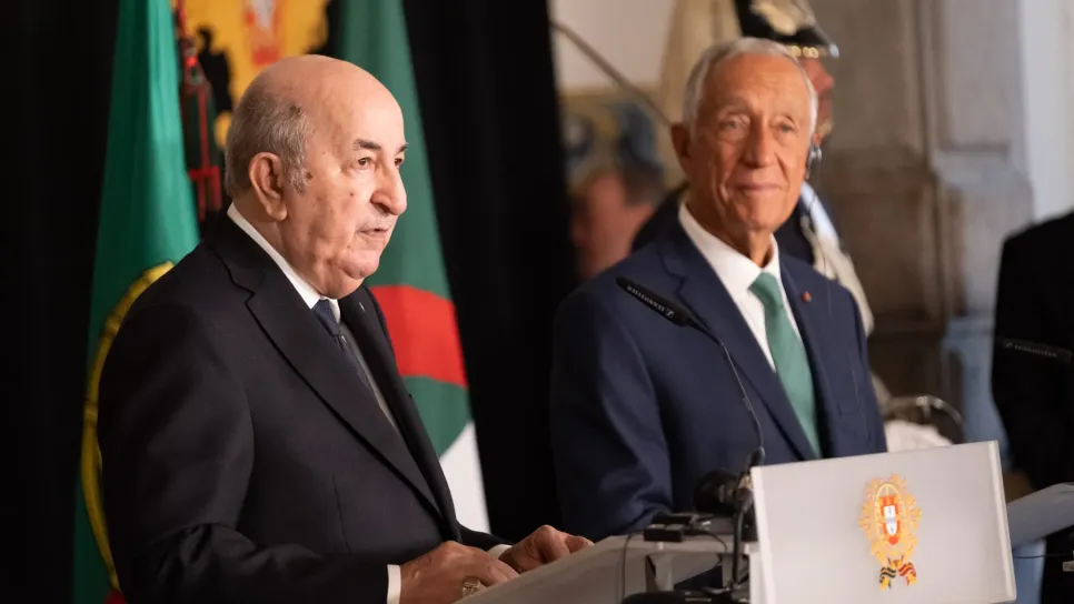 أدلى رئيس الجمهورية، عبد المجيد تبون بتصريح مشترك رفقة نظيره البرتغالي مارسيلو ريبيلو دي سوزا عقب محادثات ثنائية جمعت الرئيسين بقصر "بيليم"، وهذا أهم ما ورد فيه: *الرئيس البرتغالي: لدينا موقف ثابت يحترم دور منظمة الأمم المتحدة وقراراتها في ما يتعلق بالصحراء الغربية الرئيس تبون: أغتنم هذه المناسبة لأتوجه بالتهاني الحارة للرئيس البرتغالي وللشعب البرتغالي الصديق الذي سيحتفل في الـ10 جوان المقبل بعيده الوطني "يوم البرتغال" الرئيس تبون: إننا على بعد أيام قليلة من إحياء الذكرى 210 لمعاهدة السلم والصداقة بين إيالة الجزائر ومملكة البرتغال في 14 جوان التي كانت منطلقا لعلاقات مكثفة ومتعددة الأبعاد،...