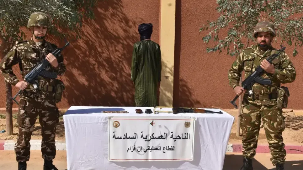 سلّم الإرهابي، المسمى "حاج عصمان ڨومار"، نفسه للسلطات العسكرية بإن ڨزام بالناحية العسكرية السادسة، وبحوزته مسدس رشاش من نوع كلاشنيكوف، وكمية من الذخيرة وأغراض أخرى، وأوقفت مفارز للجيش الوطني الشعبي 05 عناصر دعم للجماعات الإرهابية، خلال عمليات متفرقة عبر التراب الوطني، حسبما أفاده به، اليوم الأربعاء، بيان لوزارة الدفاع الوطني.