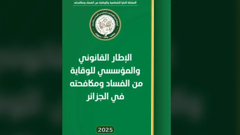 أطلقت السلطة العليا للشفافية والوقاية من الفساد ومكافحته،" الإطار القانوني و المؤسسي للوقاية من الفساد ومكافحته في الجزائر"، يمثل مرجعا توجيهيا شاملا ومتكاملا، لفائدة الأعوان العموميين والخبراء والباحثين، والجامعيين والصحافيين والإعلاميين والناشطين، وأعضاء منظمات المجتمع المدني.