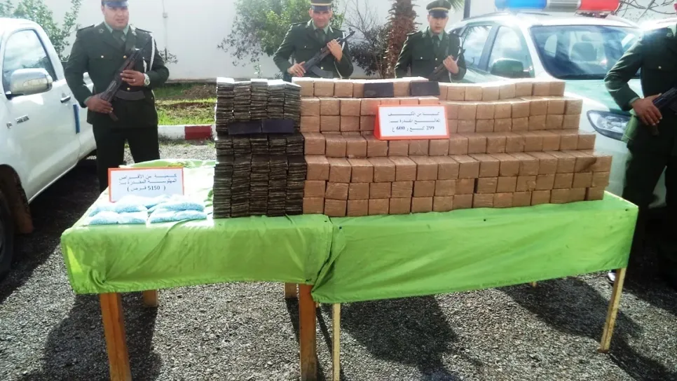 أحبط عناصر الدرك الوطني لعين تموشنت بإقليم الناحية العسكرية الثانية، يوم 05 جانفي 2016 محاولة ترويج (299,6) كيلوغرام من الكيف المعالج و(5150) قرص مهلوس، كانت مخبأة على متن مركبة رباعية الدفع. فيما ضبط عناصر حرس الحدود لتلمسان (2520) لتر من الوقود وسيارة سياحية. من جهة أخرى، أوقفت مفارز بالقطاعين العملياتيين لتمنراست وعين قزام بإقليم الناحية العسكرية السادسة أربعة (04) مهربين وضبطت عربة رباعية الدفع وست (06) دراجات نارية وأربعة (04) أجهزة كشف عن المعادن و(470) علبة سجائر.