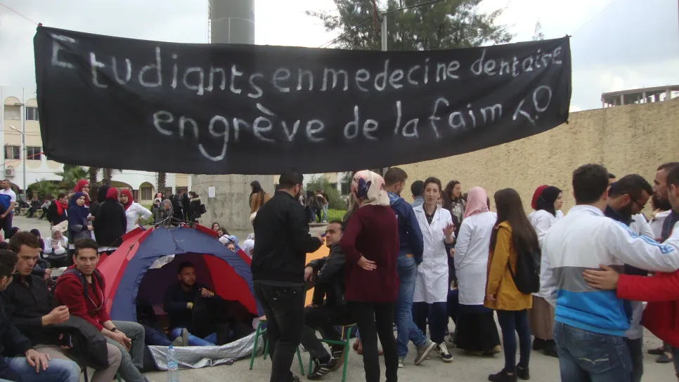 دخل، نهار أمس، عدد كبير من طلبة طب الأسنان في مختلف الكليات على المستوى الوطني في إضراب عن الطعام، في حركة تنسيقية تصعيدية جديدة ما بين الولايات، بعد أن انتهت المدة التي أمهلتها تنسيقية الطلبة لعقد لقاء بين وزارتي الصحة والتعليم العالي مع الوظيف العمومي، للبت النهائي في طلبات الطلبة المضربين. قام، صباح أمس، طلبة طب الأسنان بمعهد الأمير عبد القادر في قسنطينة، بغلق نهائي للبوابة الرئيسية له، بعد أن رفضت إدارة الملحق منح الطلبة المضربين قسما للمبيت فيه، حيث سيضطر هؤلاء للمبيت في الشارع، وهو ما أجج الغضب لدى الطلب المضربين والمحتجين، نهار أمس، ووصل إلى حد منع خروج أي شخص وحتى المركبات من المعهد ا...