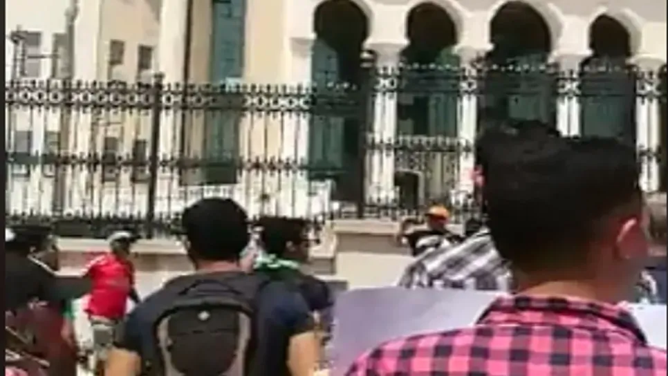 يشهد مجلس قضاء وهران الأثناء احتجاجا لمجموعة المواطنين وأعضاء الرابطة الجزائرية للدفاع عن حقوق الإنسان للتنديد بتوقيف ناشطين الحراك الشعبي عبد الهادي عباس.