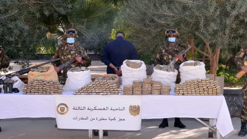 أعلنت وزارة الدفاع الوطني، اليوم الأربعاء، في بيان، توقيف 35 تاجر مخدرات منهم واحد من جنسية مغربية تم القبض عليه ببشار وبحوزته 207 كيلوغراما من الكيف المعالج وسلاح ناري. وبعد توقيفه، أدلى مهرب المخدرات المغربي المدعو "عبد الغني شنة" باعترافات مثيرة نشرها التلفزيون العمومي. وقال المهرب: "الشباب المغربي يقوم بتهريب المخدرات من المغرب نحو الجزائر بسبب الظروف الاجتماعية القاهرة وتفشي ظاهرتي الفقر والبطالة". وأضاف: "المخزن والمخابرات المغربية ضالعون ومتواطئون في عملية إنتاج المخدرات وتهريبها إلى الجزائر". وتابع ذات المتحدث: "نظام المخزن يقوم بإسكات واضطهاد الشعب المغربي واعتقال كل المنددين بالت...